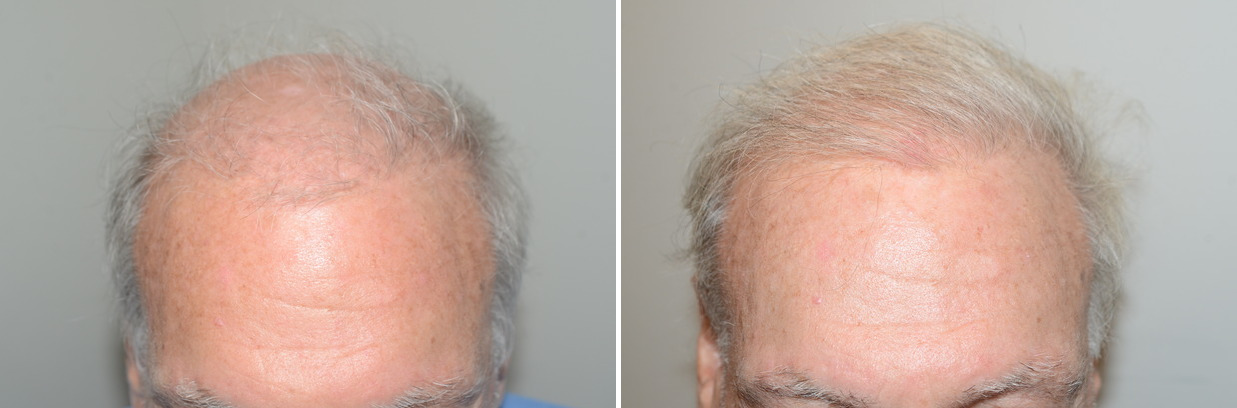 This 71 yo patient had a limited scalp donor supply due to previous hair transplants, so he underwent the transplanting of mostly beard but also scalp hairs to restore a fuller more aesthetic appearance. He is shown just 7 months post-procedure.